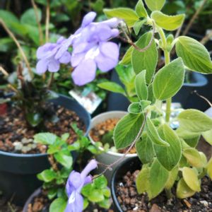 🟣🍀🟣 ストレプトカーパス 去年は 咲きませんでした 夏の間は 日陰の涼しい所で 夏越しです 10月になって ちょっとは ☀日に当てた方が 良いかと 日に当てたら 4枚めのように 1日で 枯れ枯れに なったので 5枚めのような 立派な 葉だったのに 🍂🌿🍂 ✂️ 見苦しい葉は 取り除きました 😵