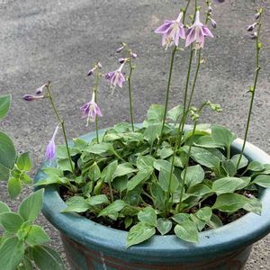ミニのギボウシ 隣りのストレプトカーパスの葉と同じくらいの葉っぱです😃