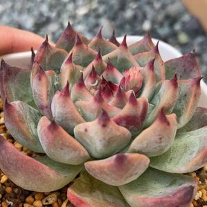 ピンクが可愛くなってきたVERVEさん苗 シルエット♡ 双頭の苗でしたが、片方の成長点が消えて、新しい子株が2個出ました🌱 1個は寄植に使いました。 残り1個は葉挿しが大きくなったみたいになってますね。 増やしやすくて可愛い♡ お得苗です✨