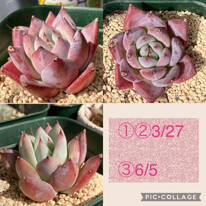 🟣珍しくパープル系いきます🟣 バードフライ bird fly 初夏越し組。 薄い白粉。葉っぱ分厚くておひさま当たるとゼリーみたいです。お水加減が特にわからない株の一つ😰ヤダわー 写真の下側、③枚目が今の姿です。 紫ではなくなるのかなー? この方が安心して日に当てられる気もします♫ ただの直感ですけど…(笑)