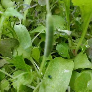 種から植えたベビーリーフ、2週間ほどでベビーリーフっぽい形になってきました! ポツポツ糞があったからさっきリビングから見たらアオムシくん発見‼︎ ごめんけど、サヨナラ! 間引くらしいがどこをどう間引いて良いかようわからんので放置笑 とりあえず形になってきたものを収穫してみようかね!