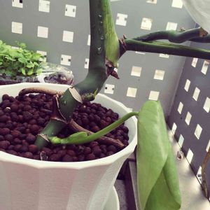5年目くらいのモンステラ(ダイソー) 今年は大人しかったのに今頃新芽を出すっていう。奥のベビーリーフも順調で嬉しい(*´`)