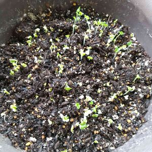 ベビーリーフの7月5日に蒔いたら きょうの朝芽がでてきました。 確かに芽が出るのが早いっ🌱