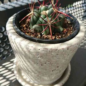 『カケルゴ』から持ち帰ってきた【ギムノカリキウム バッテリー】棘が1本で上向きにズバッと出てるやつ。 ちいちゃいのは怪竜丸の子吹で、もいだやつをオマケでつけてもらいました。