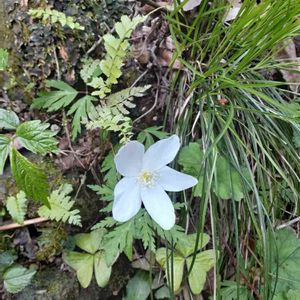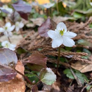 クマガイソウの葉の間からイチリンソウ(♡ˊ艸ˋ)♬*かわいい〜 木の下はジャングルですっ