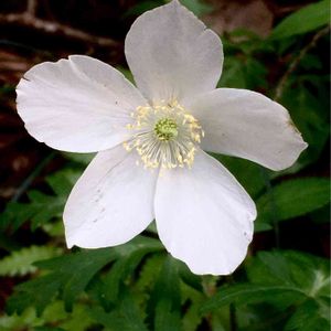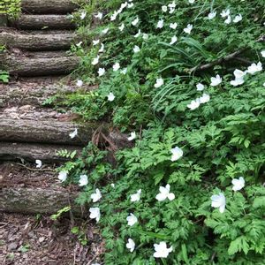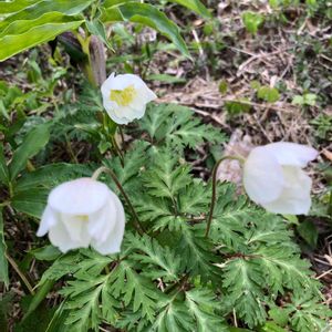 イチリンソウのお花です 山の中に真っ白な真綿がポンポンポンと浮かんでいるような可愛いらしいお花 後ろには先ほど投稿したウラシマソウがありますよ😊