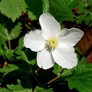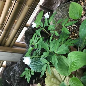 川に向かう階段沿い、白い花が沢山咲いていました。 葉っぱは福寿草みたいな葉っぱ。何という花でしょう?
