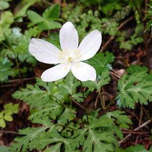 🍀野の花・イチリンソウ (一輪草) 3🍀 見上げてみました・・・ 青空を背景に 白い萼片が青みを帯びて 美しいです✨✨ 【イチリンソウ (一輪草)】 《別名》一華草 (イチゲンソウ) ウラベニイチゲ (裏紅一華) 《分布》本州~九州に分布する多年草。 《生育地》落葉広葉樹林の林縁や林床に生育。 《高さ》20~25cm 《葉の特徴》 葉は茎に3個輪生する。 3出複葉で、長い柄がある。小葉はさらに羽状に深裂する。