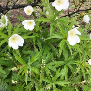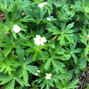 こんばんは。夕方近所の人と話をしていて、このお花は隣の方から頂いだらしいんですが、凄く増えるからもし欲しかったら、あげるよ〜と言われました。 一応予約(笑) ただ名前を忘れたみたいで、なんてお花が教えて下さい😉 ちゃむさんに名前教えて頂きました。イチリンソウだそうです😊