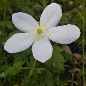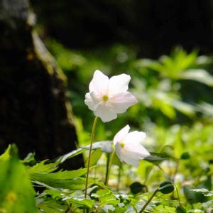 イチリンソウ ニリンソウより大きく、イチゴの花にも似た感じ。山の川辺に咲いていました。 朝早く、花びらが開きかけた感じがとても可愛らしいなと思いました。