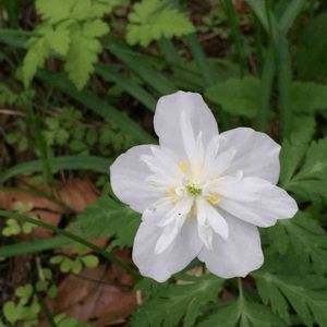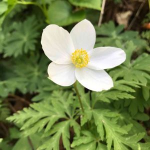 春の妖精🧚♀️ (18) イチリンソウ(一輪草) キンポウゲ科 別名: 一花草(いちげそう) 一華草(いちげそう) 花期:4月〜5月 ニリンソウに似ていますが大きさはニリンソウより一回り大きく、春、茎先に白い花を一輪だけ咲かせます 葉は複葉で、小葉は羽状に深く裂けています。 イチリンソウもニリンソウと同じく花弁の裏はほんのりピンク色で可愛いです♡︎ʾʾ