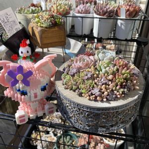 毎月恒例の寄植えカルチャー 今月は春らしくかご寄せでした💕 ピンセットもほとんど使わずにセダムメインでまとめて植えていく。 大雑把に見えて隣との色合わせはや成長を考えて配置していく感じが楽しかったです✨ 置き場所は物干しだけど😅