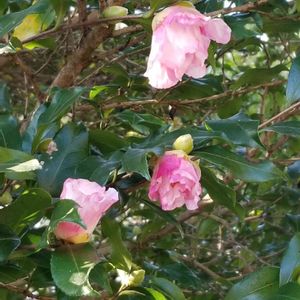 昨夜の月🌕️ 素敵でしたね❤️ 山茶花の下 笑ってる奴を見っけました