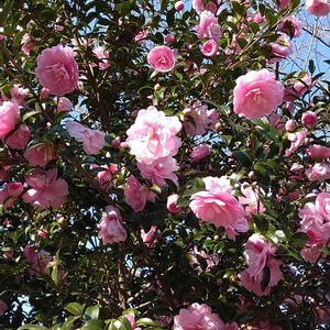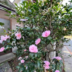 桜並木の傍の喫茶店だったかな? サザンカが♡薄ピンク小振り なのに花が沢山で可愛く❀ 綺麗でした・゜゚・*:.💫🎵