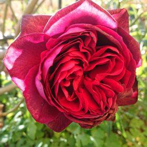 初秋の黒薔薇アストリットグレーフィンフォンハルデンベルクの傷のないお花が咲きました。 春のお花とは少し違うけど。🌹🌹🌹 今朝は秋風が気持ちいい〜。 冷たい秋風は🌹さんのお顔をぴーんとさせます。