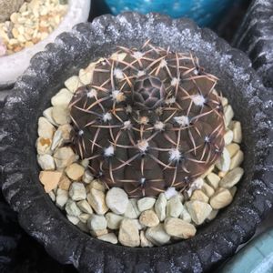 サボテン ギムノカリキウム 鳳頭 お日様強めで管理だったので緑に戻らず一部茶色😅 花芽もここまで育ったから今年も一輪咲きそうです。🤗
