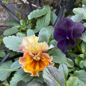🧡シエルブリエ&ビオラ🖤 寒さで葉っぱだけになってたビオラ、パンジーも暖かさが続くと感じ取って咲き始めました💕 フリル咲きパンジー シエルブリエ ビオラ ブラックデライト