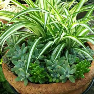 オリヅルラン と ペラエア・ボタン ファーン😊