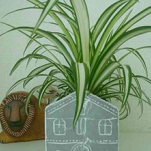 一昨日、オリヅルランをお迎えしました😊🎵 苗ポットサイズなので、先日買ったおうち型鉢カバーにとりあえず入れてみました🏠 オリヅルランの葉って、レトロなリボンみたいで好きです🎀