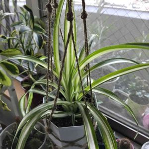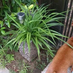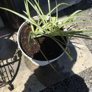 散歩から帰宅して気づく。 オリヅルランがイイ感じ♪ 他の鉢のは 増えすぎてモジャモジャ。 ほどほどが1番キレイだね。