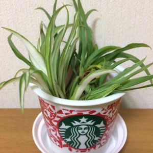 会議前の前泊に旅立つ直前に ネットで買ったオリヅルラン3種が届いた‼️ 忘れてた〜😰 シオシオで届いたから復活するかわからないけど… 頑張れ〜‼️ 取り敢えずスタバの限定プリンのカップに❤️
