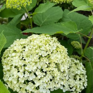 こんにちは😊 連投失礼します🙇♀️ 鉢植え3年目の 🤍アナベル🤍 今年は沢山の花茎が上がっています🥰 順に緑から白に💚🤍💚🤍 日々の変化が楽しみです🎶💓 本当は地植えで育てたいけど、 場所確保が難しいかなぁ〜🤔