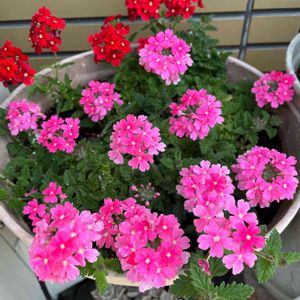 こんばんは🌌🌙 3年前?に花壇植えしてた 🌸PW スーパーべナ🌸達 植え替えたり 挿し芽したりして 今年も元気に咲いています🥰 他の色も一緒に植えたのだけど 咲いてみると 赤❤️が1本で 他はピンクだけに なりました🌸🌸🌸 今年は葉っぱも緑🌱のまま 綺麗に咲きました💖