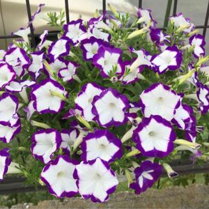 💜サフィニアアート 江戸しぼり 💜 何度も切り戻しする勇気が なくて・・😅 私にはこれが精一杯の 満開です🤗 大好きなお花(*^^*)♡♡