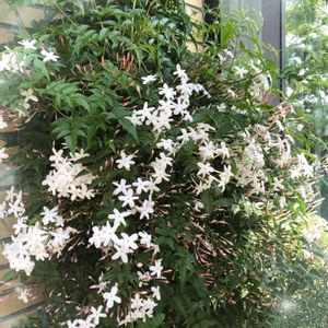 雨上がりの爽やかな朝です🍀 玄関脇のジャスミンが とてもよく咲いています🤍 私にはおウチに入れると チョット強すぎる香り この場所で皆んなを癒してネ🍀