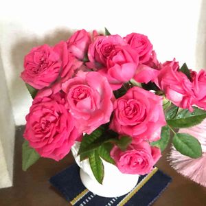 雨で枝が乱れてしまった ミニ薔薇🌹さん ✂️して小さな花器に いけました💕💕