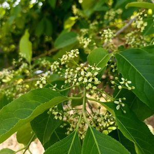 隣のおじさんから珍しいのが咲いてると言われ見に行きました。2m位の木に花がいっぱい付いていました。