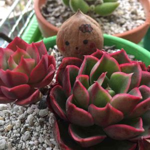 ↖️今日も元気に暴れてました、ムスコーサ🐲 ↙️染まってきたよ~紅娘 グラウスと同じものってホントかな? ↗️あんみつ姫=コンプレッシカリウス(エケベリア原種) い~~色だねぇ ↙️渋ーいクロマ 素敵(,,-ω-,,) あぬびすさんの投稿で(勝手にお名前出してすみません)⬆上のコンプレッシカリウスの交配種かも?って書いてあったので、並べてみた うん!赤黒カラーが繋がりを感じるなぁ