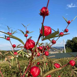 公園のローゼル♪ 昨年は、義母が、育てたのを私がジャムにしましたが、今年は、育てなかったみたいです。 綺麗な色で甘酸っぱいジャムは、美味しかったですが、生け花の花材に使ってらっしゃる方もみえるみたいですね。