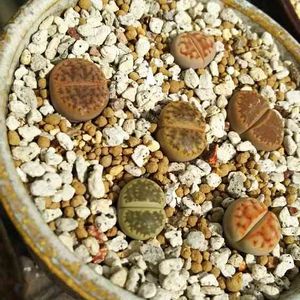 リトープスも雑種は強い‼️と、いうのも この暑さで高額リトープスが2つ溶けてしまって😢 昨日も33.5℃でしたからね 秋までいくつ残れるか…。