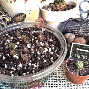 そして‼︎さーらーに! これ、何だかわかります? ̄▽ ̄)見にくい? 種から育てられたナイスなヘキルリランポーのベビーです🌵 ̄▽ ̄🌵✨しかも2つ〜♪一番小さな鉢でもさらに際立つミニミニさ👍゛大きくできるかなぁ; ̄▽ ̄) 今回✼Bǝё-n✼さんから頂いた3つの贈り物はすべてナイスでした✨そして成長が楽しみです☺︎゛ ✼Bǝё-n✼さんありがとうございましたー🙌✨✨ だいじにしまっす( ̄▽ ̄)ノ✨