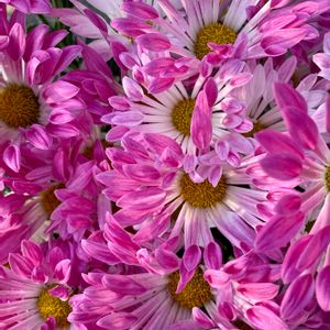 【菊】《キク科》 「風車菊」 花言葉 「清浄」「高潔」 別名 カザグルマギク 菊全般の別名 イエギク(家菊) オキナグサ(翁草) ヨワイグサ(齢草) チヨミグサ(千代見草) 〈スプレーマムの仲間〉 中国に自生する「チョウセンノギク」と「ハイシマカンギク」の交雑によって誕生した園芸植物の一つで、スプレーマムと呼ばれる菊の仲間の一種です。 〈風車菊の由来〉 花弁がスプーンのようになっていて風車のように見えるので名付けられました。 〈菊の名の由来〉 キク(菊)という名前は、「窮まる(きわまる)」が語源で、一年の最後に咲くことに由来しているそうです。