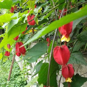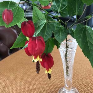 チロリアンランプ❤️ (アブチロン) が、可愛ぶら下がってる🎶