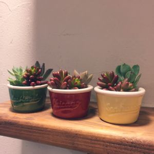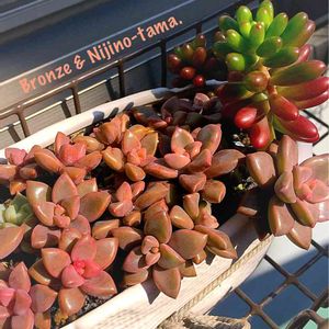 お家の多肉も紅葉してきました🍁空き缶風の鉢植えやシャワーの飾りも全部100均で買えるから好き(*´꒳`*)