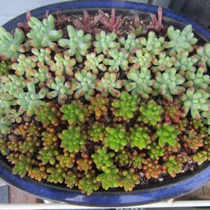 盆栽鉢に、タペストリーでもと、柄になく並べてみたら、 ウーン、虹の玉と乙女心に、シンビを添えた、ぎゅう詰め三色弁当フウ...。 やっぱり、適当に植えて、あとは、多肉ちゃんに任せるほうが、性に合ってる。