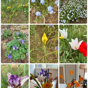 365日連休ですが、今日は畑仕事しましたよ!誰もやってくれないし😅 暑かったなぁ〜😫 畑の片隅に咲いてるお花、だいぶ咲いて来て、賑やかでした! ポピーが満開🧡 アイリスの黄色と白も咲いた💛 ネモフィラも満開 昨年実家から、お連れしたシラーベルビアナ、初咲き良かった! スイートピーも咲き始めたので、コップに。とっても良い香り みほっこちゃんの、スイートピーが忘れられない💕