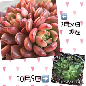 デビーさん可愛いなぁ💕 デビーは お一人様で育てると わりと大きな子だと思います💗 でも 葉の付け根が細く 寄せ植えで育てると こんな感じで ぎゅーと 潰された感じになります❣️ それでいて 葉っぱはぷりっぷりっ😻 色も ほぼ年中綺麗ですし 寄せ植えに おすすめの子です💕 デビーちゃん 最高❣️✌️ ちなみに寄せた日は 9/8日です💕