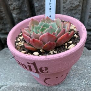 東海エコフェスタでお迎えした韓国苗の エケベリアをやっと寄植えしました😊 赤色のスーパーブームxセトーサ と 白っぽい sarang 🎵 あとは庭にある苗をプラスしました〜💕