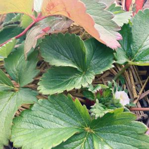 わがやのいちごさん🌱 葉っぱがおい茂っていい感じ✨ それに…花がつきました❣️
