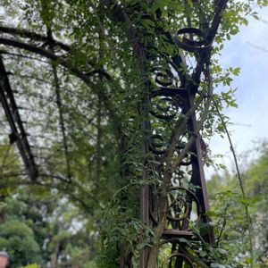 アーチの三分の一までバッサリ剪定した木香薔薇🥀 3週間してすでにアーチを半分以上も駆け登って行きます😱もっと✂️してもよかったのかしら…💦