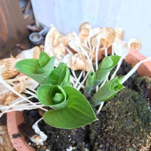 ヒメトクダマギボウシが咲きました🌼🎶 1️⃣いつもは木陰に置いてますが、日なたで撮影📸 2️⃣いつもの木陰でお花のアップ📸✨✨ ギボウシの花言葉∶「落ち着き」「沈静」「冷静」 姫徳玉は、トクダマと乙女ギボウシの交配種とのことで、葉は白粉(ブルーム)を吹きやや青味がかって見えます🌿 和名ギボウシは、蕾の形が、神社等の橋の欄干の上の飾りのタマネギ型の擬宝珠(ギボシ)に似ることに拠ります。 英名ホスタは、19世紀のオーストラリアの植物学者N.T.Host、J.Host両氏に由来します。 江戸時代に大ブームとなり、シーボルトらにより欧米に伝えられ大人気に。数多くの品種が作られています。アメリカでは丈夫さと美しさで愛され、パーフェクト•プランツと呼ばれます。 強い日当たりでは葉焼けするので、半日陰〜日陰の適湿地が適します🌿 ユリ科ギボウシ(ホスタ)属🌿