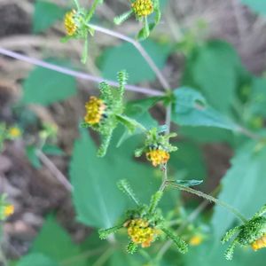 メナモミ キク科の一年草 少し標高の高い湿った所に生える引っ付き虫です。ベタベタの粘液で服等に引っ付きます。薬草の仲間でもあります。