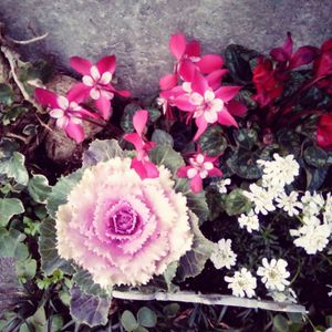 今冬は葉牡丹をたくさん迎えました🎶 陽射しを浴びると、ボタンやバラが咲き誇っているようです🌹💗💜🖤