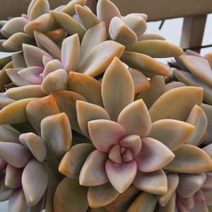 桜牡丹 可愛いピンクに染まりアピールして くる多肉さん♡ 中心部分が淡いピンクでとても 目を引きますね 多肉達がそれぞれの色に染まり どんどん華やかになっていきますね