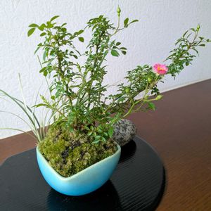 4月に作ったノイバラ(ミヤビ)と ハクリュウの盆栽 愛らしい花が咲きました🎵