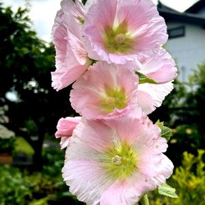 今日のお花🌸タチアオイ🌸 立葵 アオイ科 タチアオイ属 まっすぐ伸びた茎に大きなお花が咲いていて華やかです 庭先に2〜3mもあるような高い花がありました 河川敷に、一番上の最後の花が一つ咲いていました 梅雨が始まる頃に咲き、梅雨が終わったからでしょうか もう随分前に梅雨が開けたのですが 過去の写真と、最近のもの